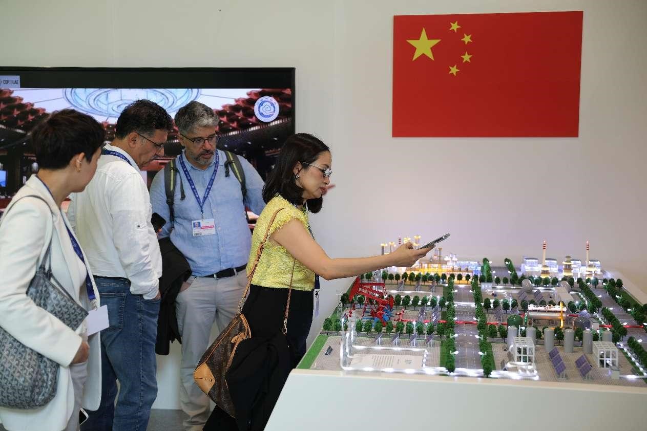 A model of China's first million-ton carbon dioxide capture, utilization and storage project is exhibited at the 28th session of the Conference of the Parties to the UN Framework Convention on Climate Change. (People's Daily/Zhang Zhiwen)