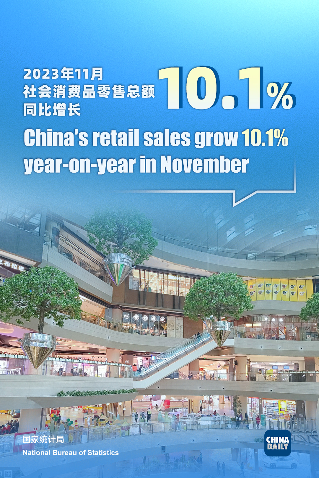 - China's retail sales grow 10.1% year-on-year in November