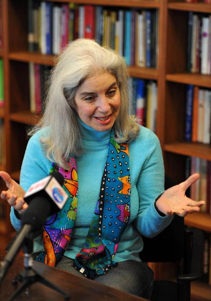 Jan Berris, vice chairwoman of the National Committee on United States-China Relations (NCUSCR) and witness of the ping-pong diplomacy between the United States and China, receives an interview from Xinhua News Agency in New York, the United States, Feb. 20, 2012. (Xinhua/Wang Lei) (lyx)