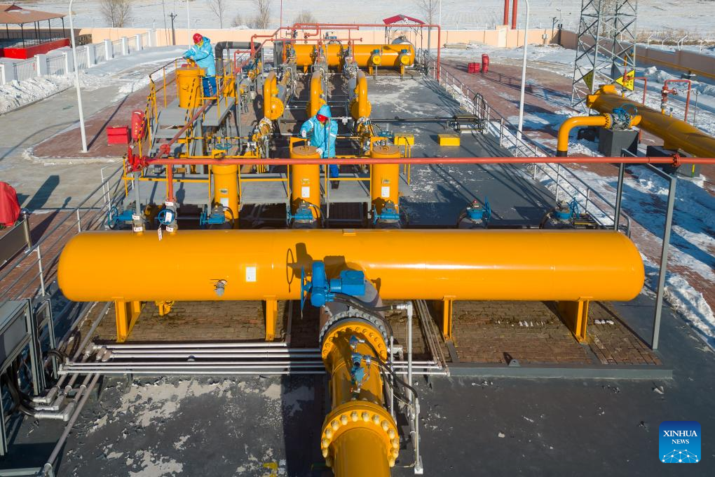 Staff members of Harbin Zhongqing Gas inspect pipelines in Harbin, northeast China's Heilongjiang Province, Dec. 17, 2023. Countermeasures have been taken to prevent or alleviate impacts inflicted by extensive snowfall and other freezing conditions. (Xinhua/Zhang Tao)
