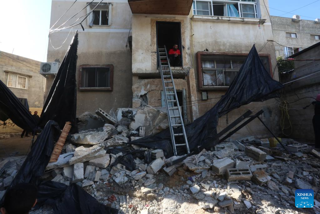 Palestinians inspect a damaged building at a refugee camp near the northern West Bank city of Tulkarm after Israeli raids on Dec. 17, 2023. (Photo by Nidal Eshtayeh/Xinhua)