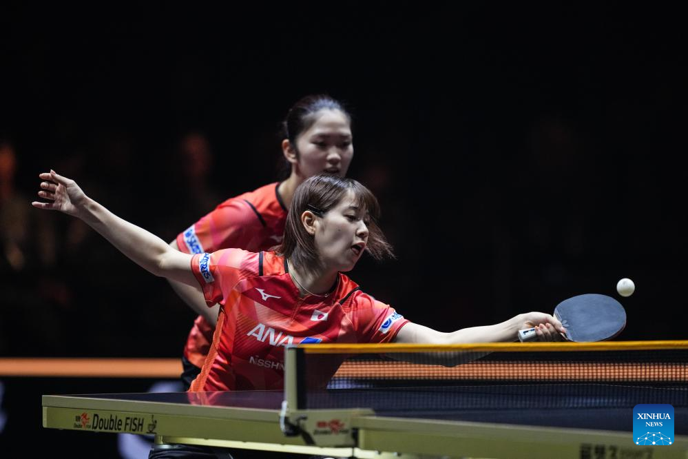 NAGOYA, Japan, Dec. 17 (Xinhua) -- World No. 1 Sun Yingsha of China won the women's singles title and teamed up with Wang Manyu to claim the women's doubles crown as well at the 2023 Women's World Table Tennis (WTT) Finals here on Sunday.
