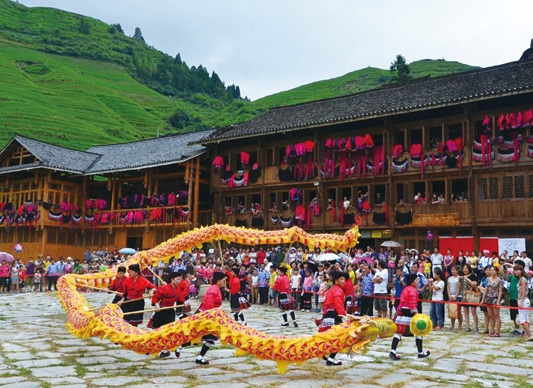 Villagers perform dragon dance in Dazhai village, south China's Guangxi Zhuang autonomous region. (Photo from the official website of Longsheng county, Guangxi Zhuang autonomous region)