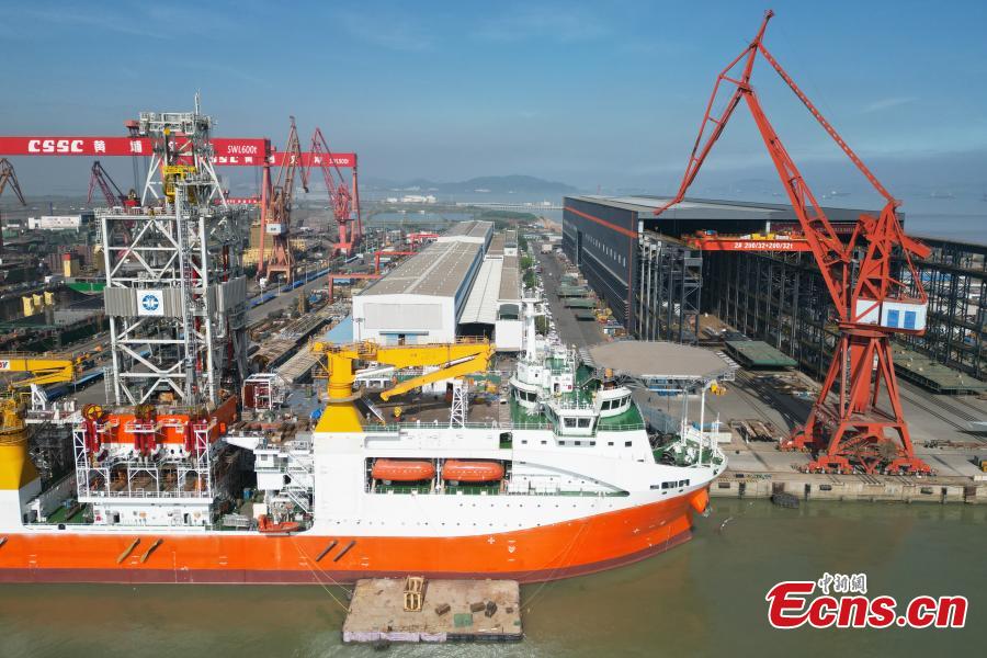"Mengxiang" (or Dream), China's first ultra-deepwater drilling vessel berths at Nansha Port in Guangzhou, south China's Guangdong Province, Dec. 15, 2023. (Photo: China News Service/Chen Chuhong)