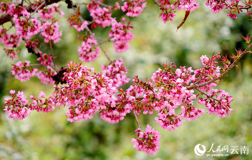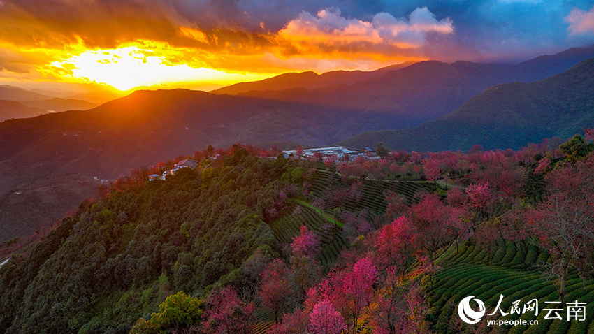 While snowfall has swept vast areas of northern China this mid-December, the Cherry Valley on Wuliang Mountain in Dali, southwest China's Yunnan Province, paints a different picture — tea fields thrive in vibrant green hues, and winter cherry blossoms burst into full bloom, covering the branches in a vibrant burst of pink.