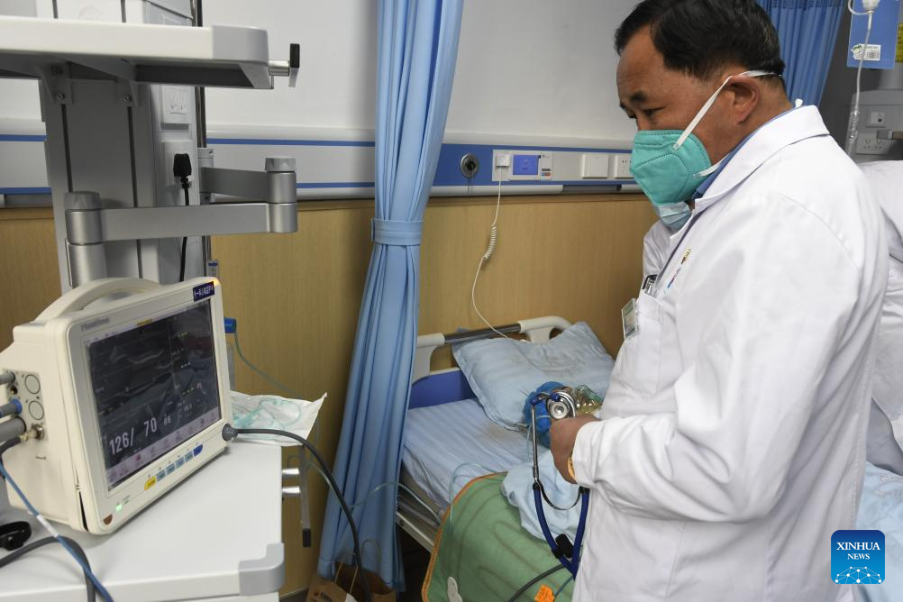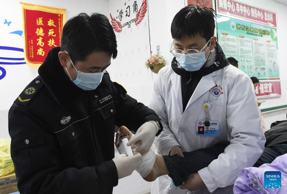 A person injured during an earthquake receives treatment at the People's Hospital of Jishishan County, northwest China's Gansu Province, Dec. 19, 2023. A 6.2-magnitude earthquake jolted the county in Gansu at midnight on Monday. Some of the injured were sent to the People's Hospital of Jishishan County. (Photo by Shi Youdong/Xinhua)