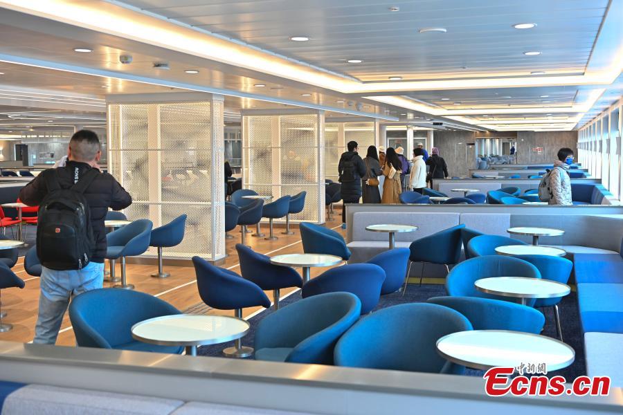 An interior view of the world's largest ro-ro passenger ship "MOBY LEGACY" at a port in Guangzhou, south China's Guangdong Province, Dec. 19, 2023. (Photo: China News Service/Chen Jimin)