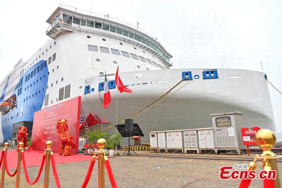 The world's largest ro-ro passenger ship "MOBY LEGACY" moors at a port in Guangzhou, south China's Guangdong Province, Dec. 19, 2023. (Photo: China News Service/Chen Jimin)