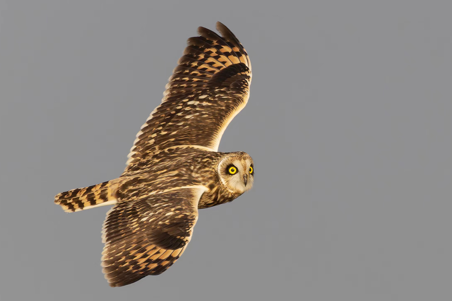 Photo shows a short-eared owl in Xiamen, southeast China's Fujian Province. (Photo/Liao Xin)