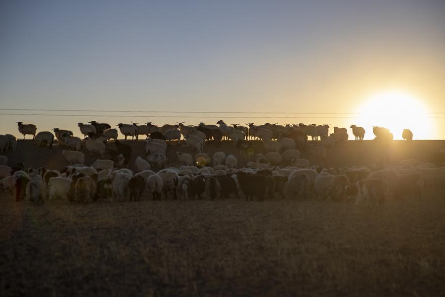 This photo taken on Dec. 18, 2023 shows sheep heading back to shed in Ngoqu Town, Nyima County of Nagqu City, southwest China's Xizang Autonomous Region. (Xinhua/Liu Wenbo)