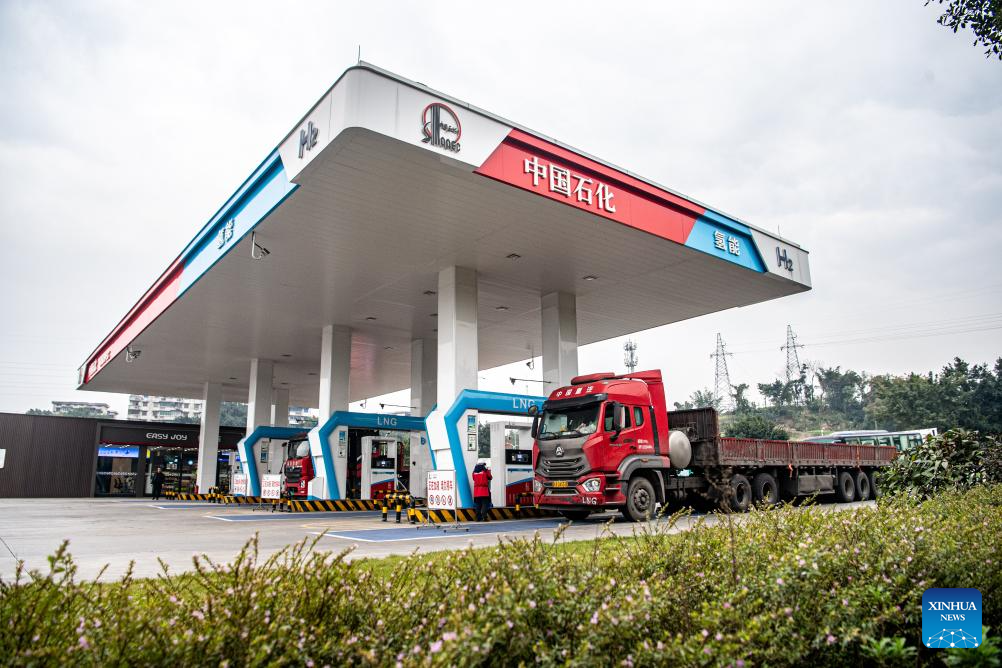 This photo taken on Dec. 20, 2023 shows a hydrogen supply center for hydrogen fuel cell vehicles in Changshou District of southwest China's Chongqing. The biggest hydrogen supply center for hydrogen fuel cell vehicles in southwest China came into operation here on Wednesday. (Xinhua/Tang Yi)