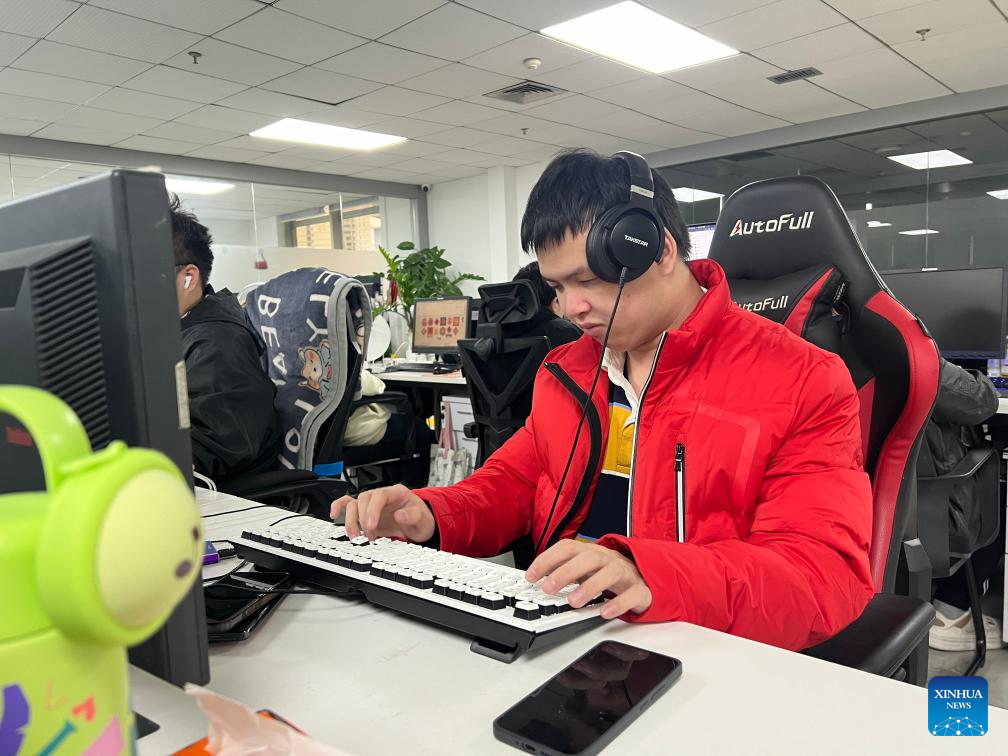 Shen Guangrong works at the Accessibility Research Association in Shenzhen, south China's Guangdong Province, Dec. 21, 2023. (Accessibility Research Association/Handout via Xinhua)