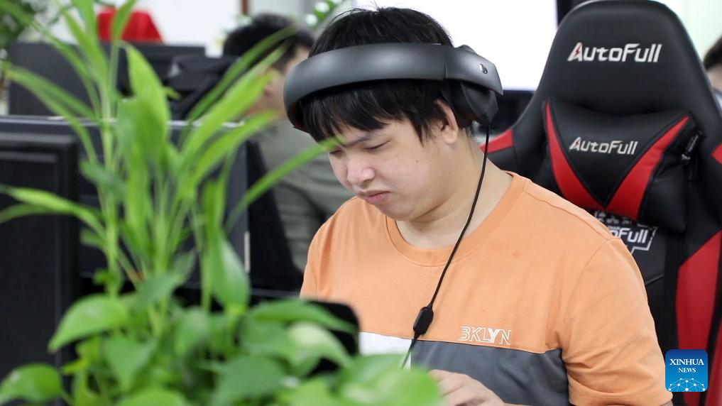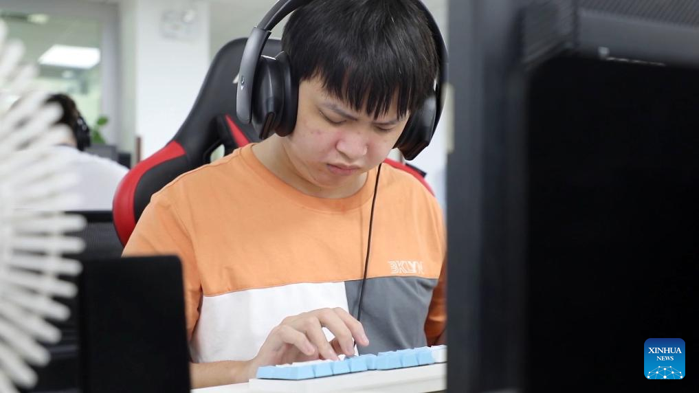 Shen Guangrong works at the Accessibility Research Association in Shenzhen, south China's Guangdong Province, Sept. 6, 2023. (Xinhua/Huang Guobao)