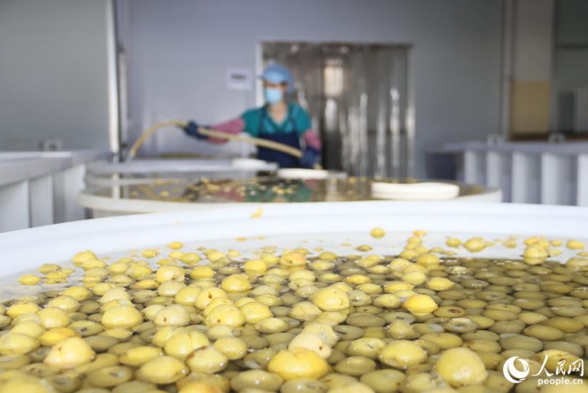 A worker rinses pickled green plums at a factory in Yongtai county, southeast China's Fujian Province. (People's Daily Online/Li Changqian)