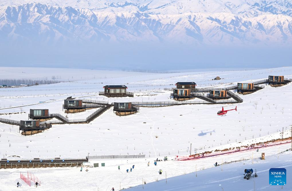 Guest houses are seen near Narat international ski resort in Xinyuan County, Ili Kazak Autonomous Prefecture, northwest China's Xinjiang Uygur Autonomous Region, Dec. 21, 2023. (Xinhua/Li He)