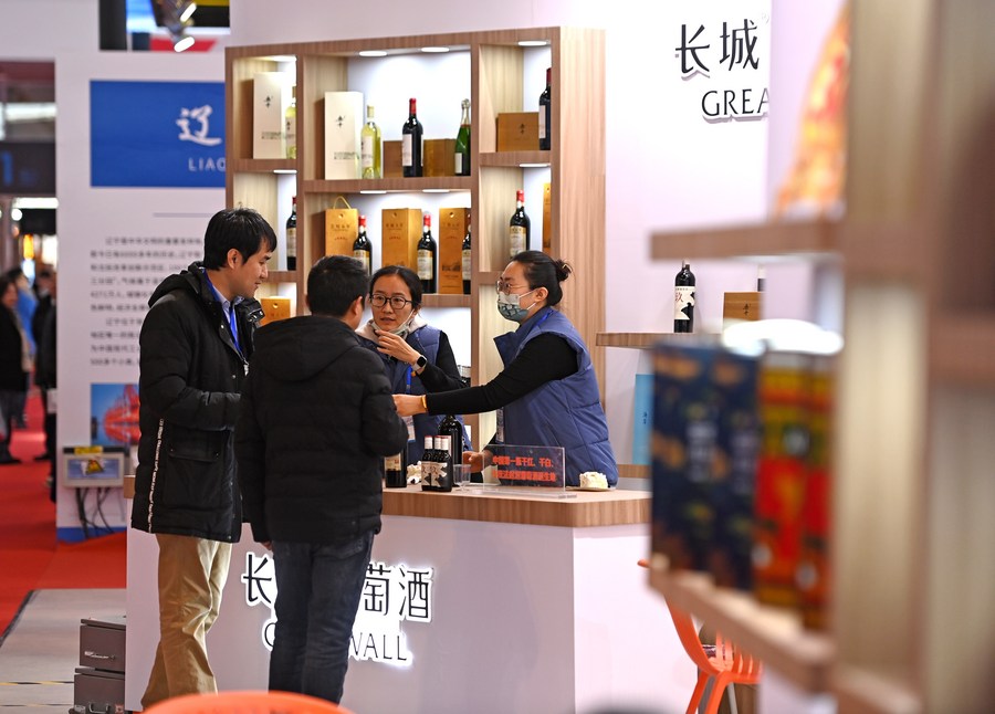 Exhibitors talk with visitors at the 2023 China (Tianjin) International Fair for Investment and Trade & Pacific Economic Cooperation Council (PECC) Expo in north China's Tianjin, Nov. 23, 2023. (Xinhua/Zhao Zishuo)