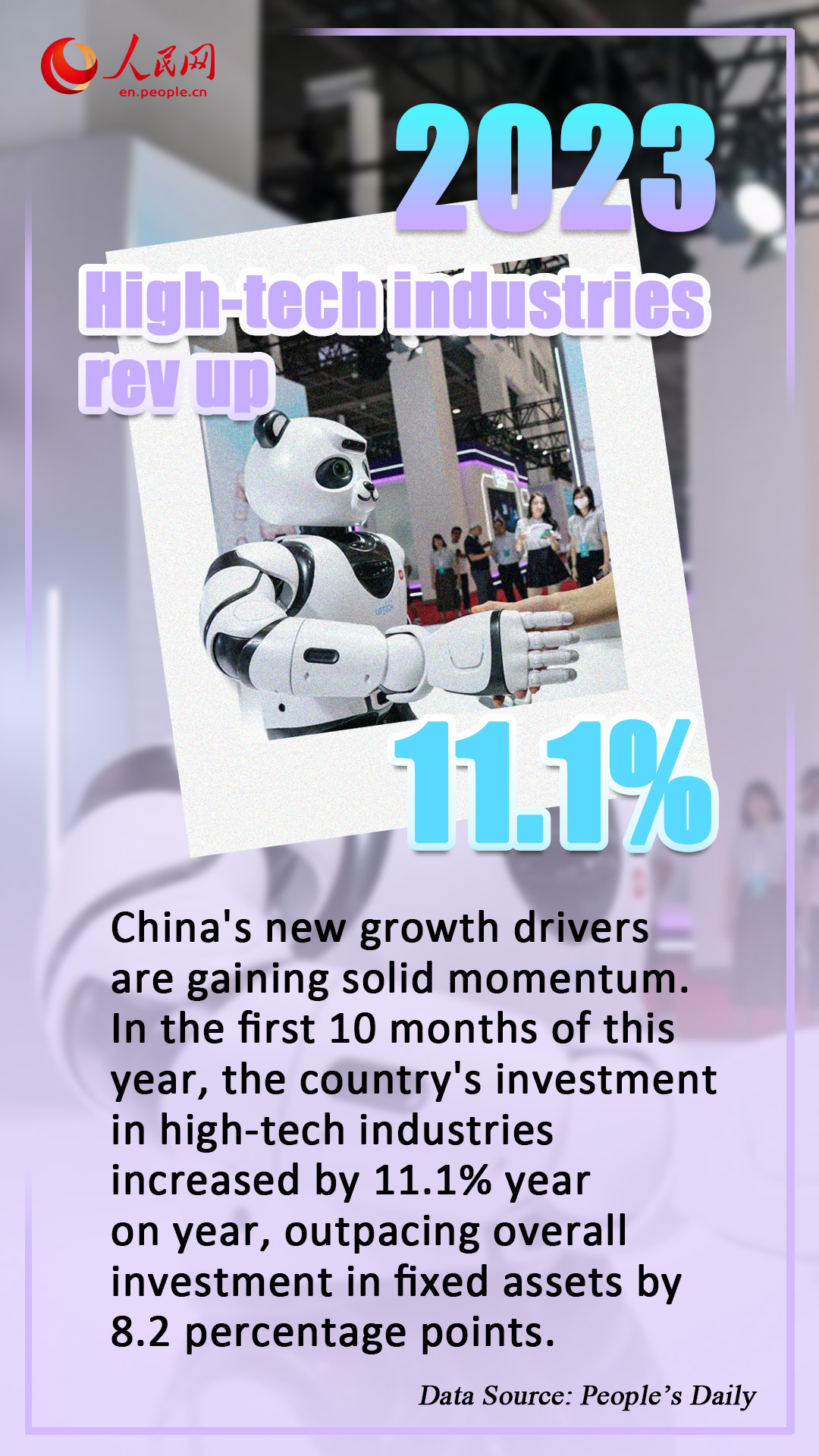 China's new growth drivers are gaining solid momentum. In the first 10 months of this year, the country's investment in high-tech industries increased by 11.1 percent year on year, outpacing overall investment in fixed assets by 8.2 percentage points. This surge provides strong support for building a modern industrial system.