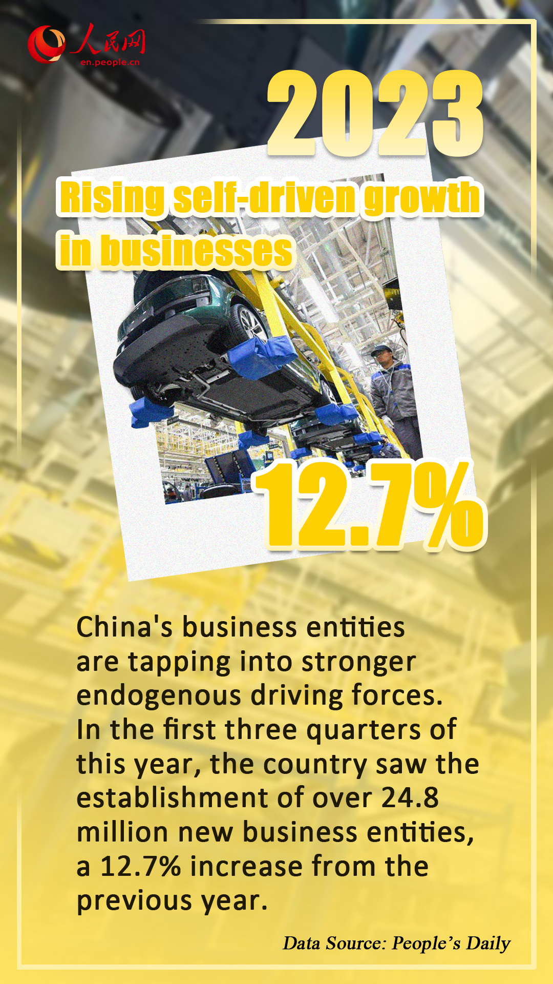Through a range of policies and measures aimed at expanding domestic demand, bolstering confidence, and promoting the private economy, China's business entities are tapping into stronger endogenous driving forces. In the first three quarters of this year, the country saw the establishment of over 24.8 million new business entities, a 12.7-percent increase from the previous year.