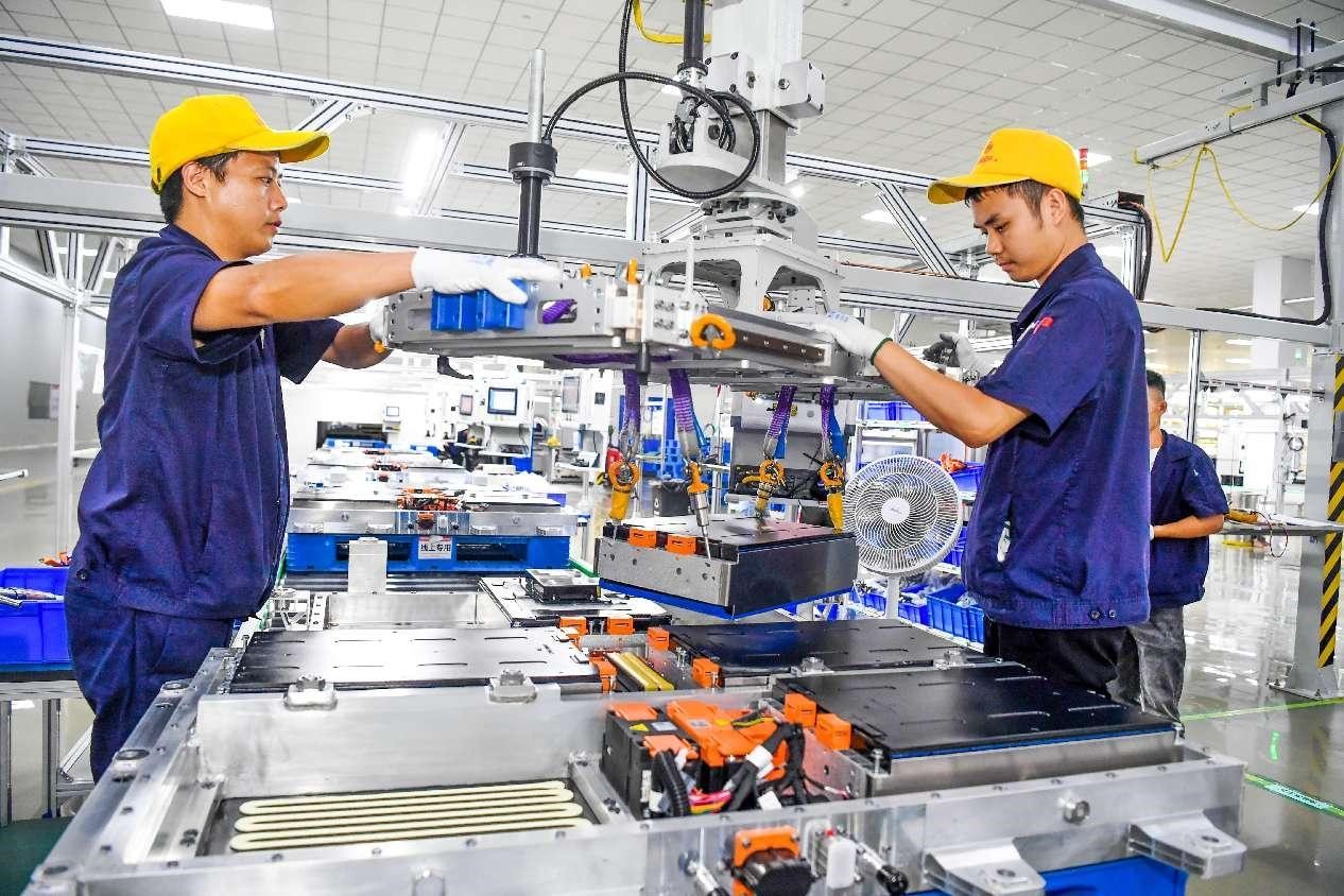 Power battery packs are manufactured in a workshop of a new energy company in Yichun, east China's Jiangxi province. (People's Daily Online/Zhou Liang)