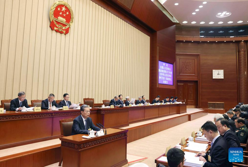 Zhao Leji, chairman of the NPC Standing Committee, attended the second plenary meeting of the seventh session of the 14th NPC Standing Committee. Zhao delivered a report on the implementation of the Seed Law.