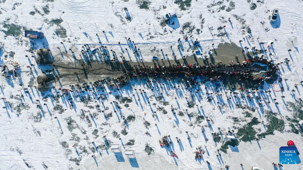 The opening ceremony of a winter fishing-themed festival is held on the Chagan Lake in Songyuan City, northeast China's Jilin Province, Dec. 28, 2023. (Xinhua/Zhang Nan)