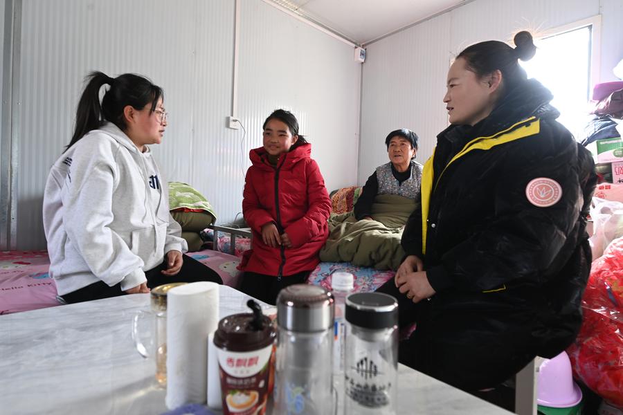JISHISHAN/HAIDONG, Jan. 1 (Xinhua) -- All forces continued to stick to their posts at the temporary relocation sites for quake-affected people in northwest China's Gansu Province and the neighboring Qinghai Province on the first day of 2024.
