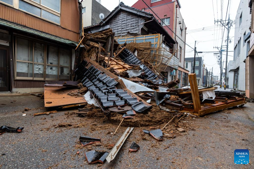 This photo taken on Jan. 3, 2024 shows a collapsed house in Nanao, Ishikawa prefecture. (Xinhua/Zhang Xiaoyu)