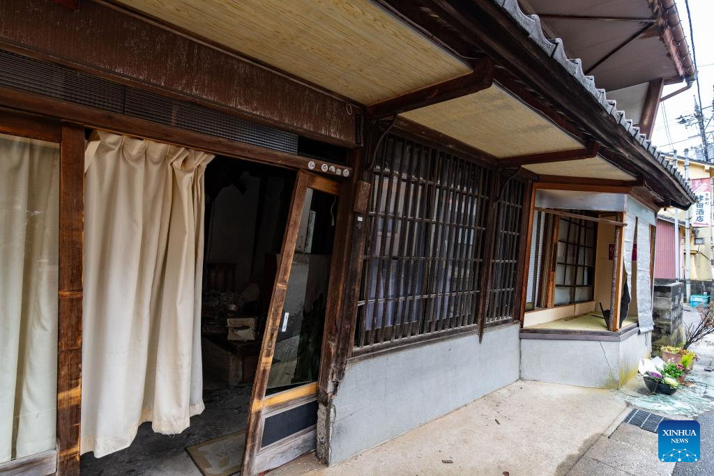 This photo taken on Jan. 3, 2024 shows an earthquake-damaged house in Nanao, Ishikawa prefecture. (Xinhua/Zhang Xiaoyu)