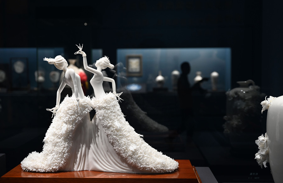 An exhibition featuring over 400 pieces and sets of Dehua porcelain, also known in French as "Blanc de Chine", opens at the National Museum of China in Beijing, Aug 26, 2023. [Photo/Xinhua]