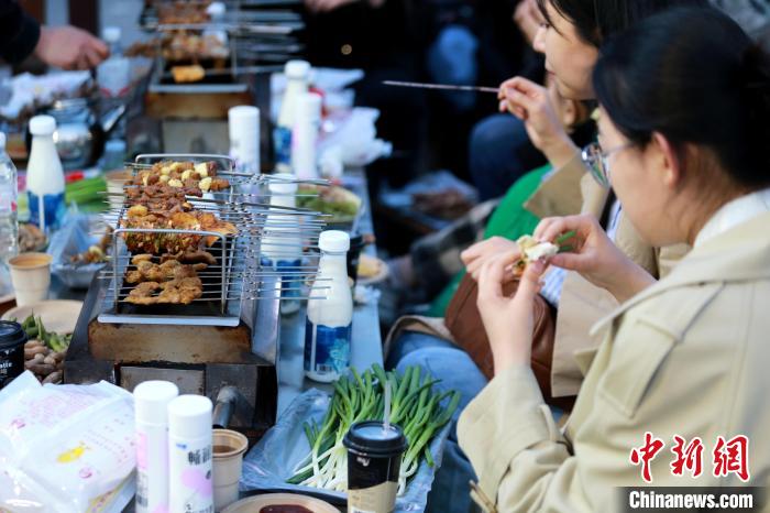 Diners enjoy barbecue in Zibo city, east China's Shandong Province (China News Service/Liang Ben)