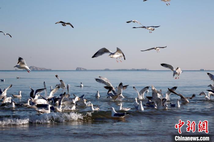 Photo shows seagulls at a beach in Yantai city, east China's Shandong Province. (China News Service/Wang Jiaoni)