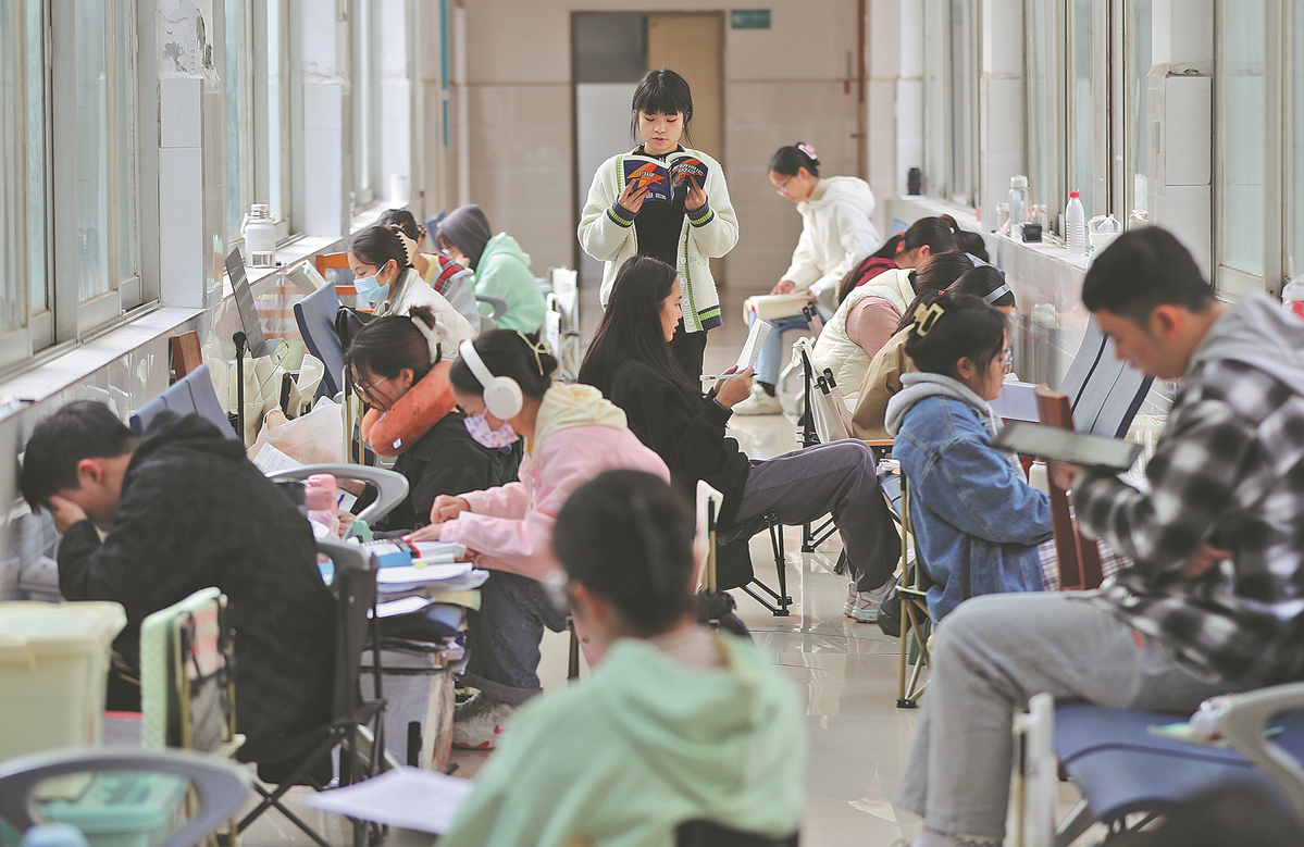 Students prepare for the postgraduate entrance exam in the library of the University of South China in Hunan Province on Nov 23. CAO ZHENGPING/XINHUA