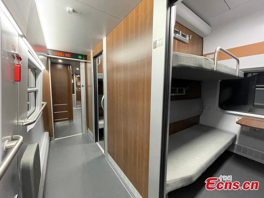 The couchette carriage of the CR200J1-C Fuxing high-speed train in Xi'an, northwest China's Shaanxi Province. (Photo: China News Service/Jia Zhiwei)