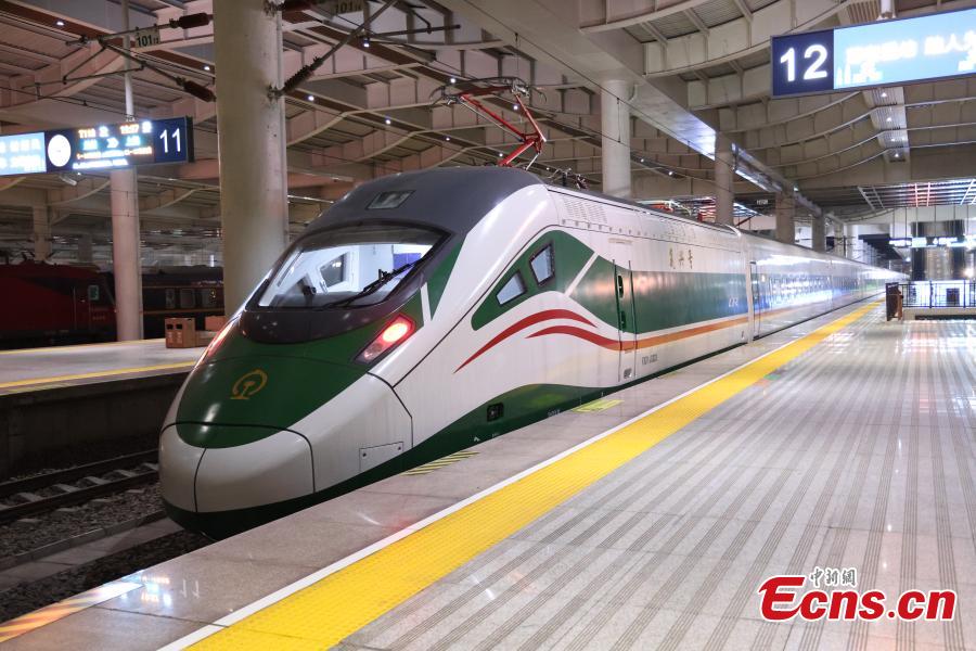 A CR200J1-C Fuxing high-speed train arrives in Xi'an, northwest China's Shaanxi Province. (Photo: China News Service/Jia Zhiwei)