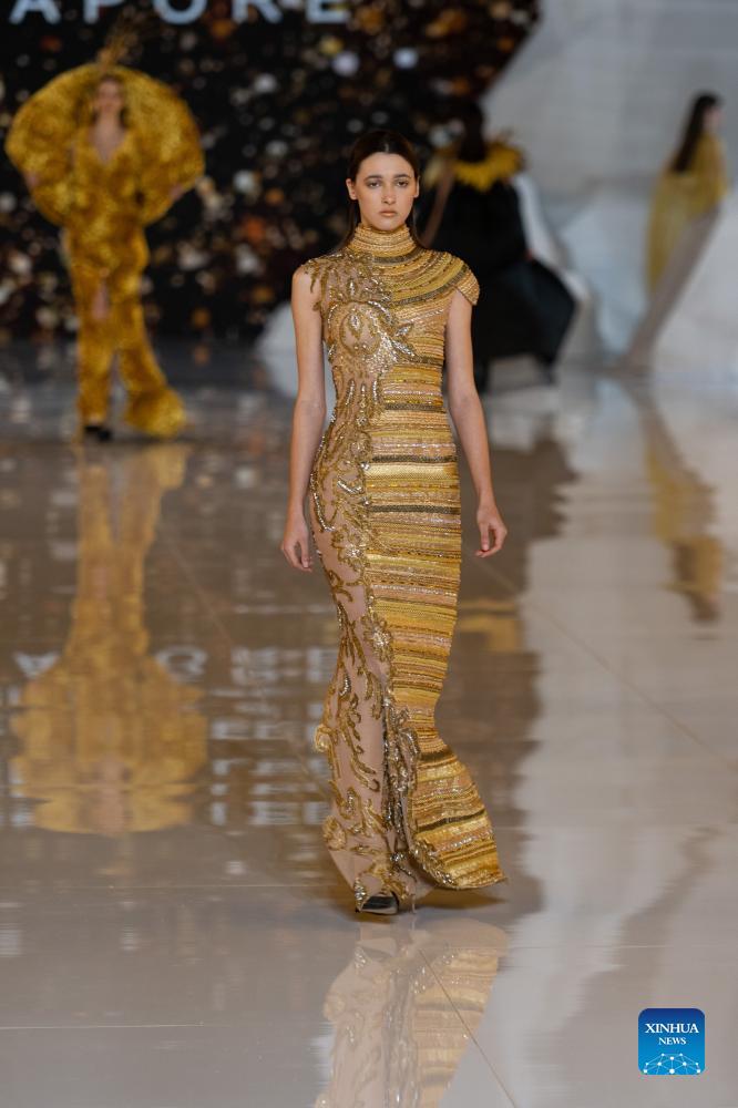 A model presents creations at the Harbin Fashion Week in Harbin, northeast China's Heilongjiang Province, Jan. 11, 2024. The 2024 Harbin Fashion Week kicked off here on Thursday. (Xinhua/Xie Jianfei)