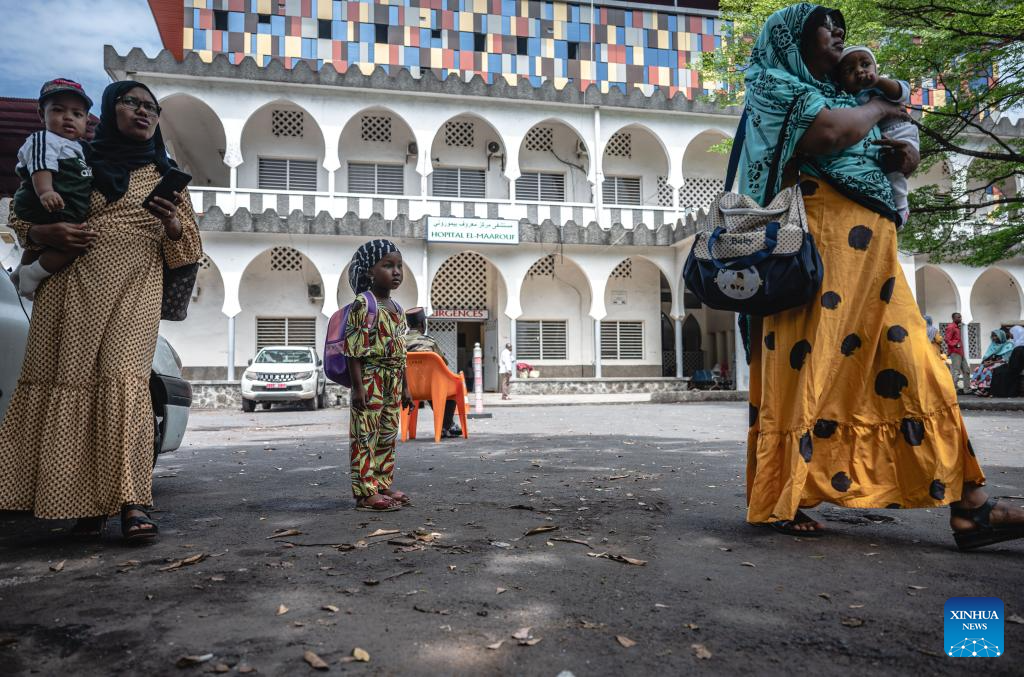 This photo taken on Jan. 11, 2024 shows a view of the El-Maarouf Hospital in Moroni, capital of the Comoros. The medical team from south China's Guangxi Zhuang Autonomous Region arrived in the Comoros in 2022, providing medical services for local patients and training for local doctors. (Xinhua/Wang Guansen)