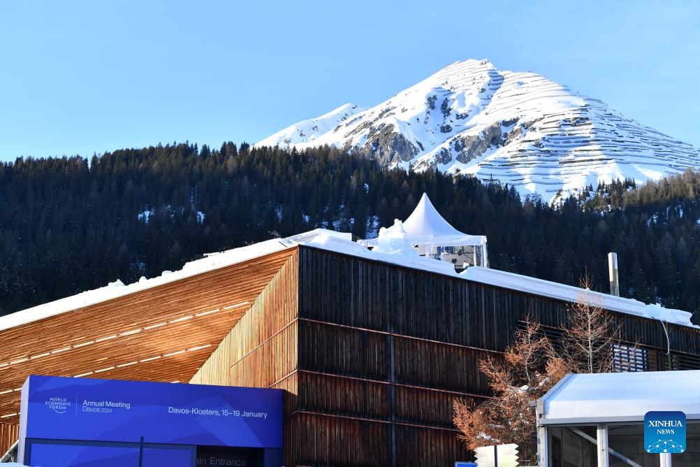 This photo taken on Jan. 14, 2024 shows the exterior view of the Congress Center for the World Economic Forum (WEF) Annual Meeting 2024 in Davos, Switzerland. On the theme of "Rebuilding Trust," the 54th WEF Annual Meeting will take place here from Jan. 15 to Jan. 19. The main topics at the forum range from achieving security and cooperation in a divided world, creating jobs and growth for a new era to a long-term strategy for climate, nature and energy. (Xinhua/Lian Yi)