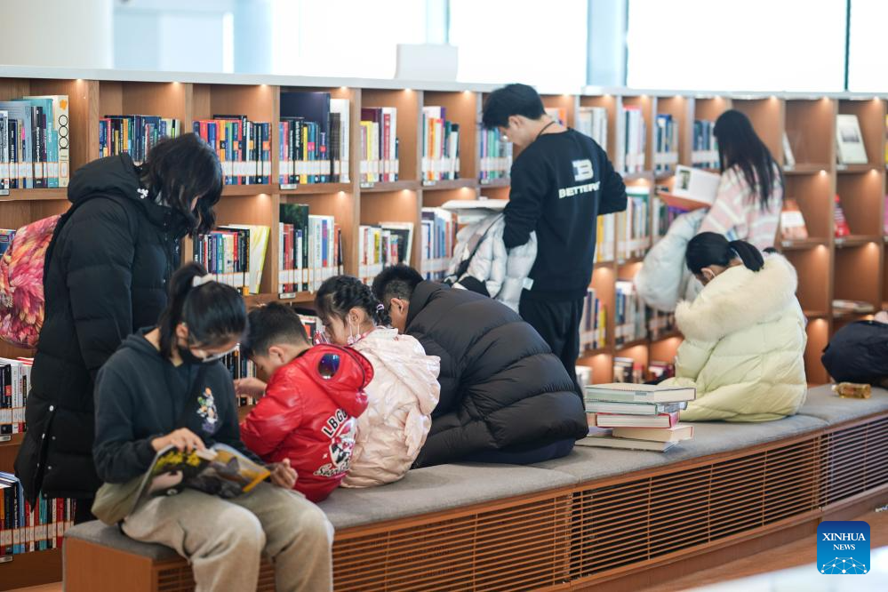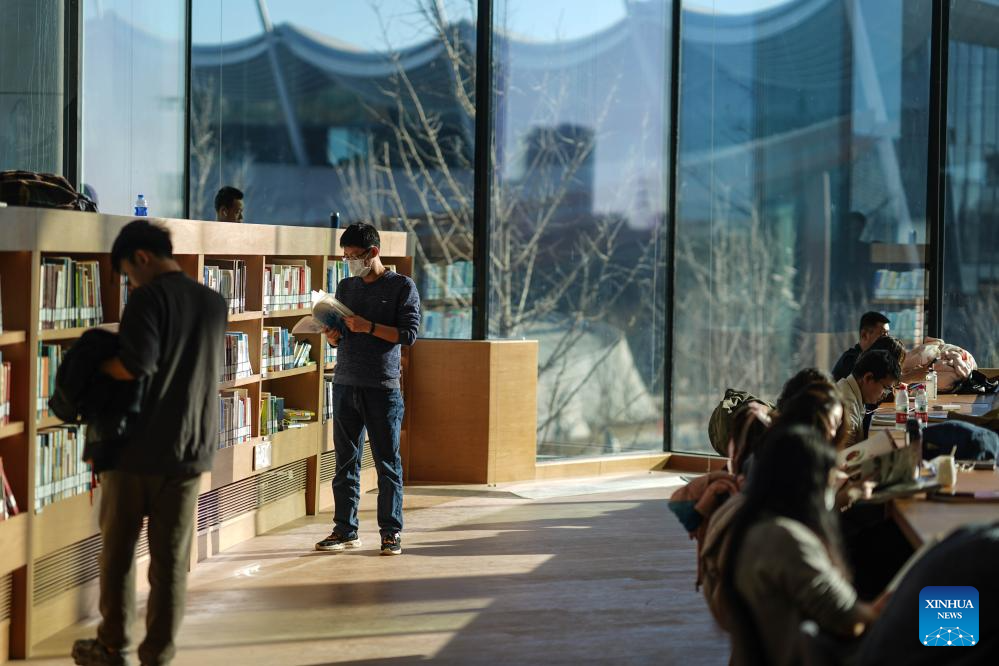 Citizens read at Beijing Library in Beijing, capital of China, Jan. 14, 2024. Many citizens visited the recently opened library to spend their leisure time this weekend. (Xinhua/Peng Ziyang)