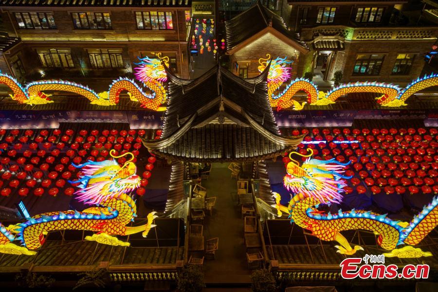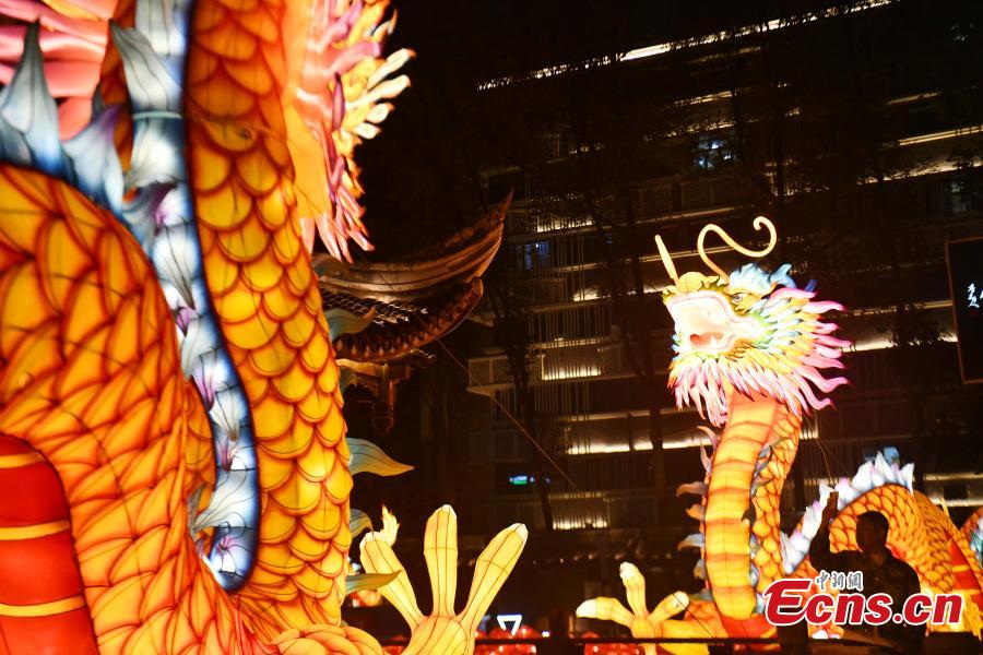 Loong-themed lanterns add festive atmosphere to city