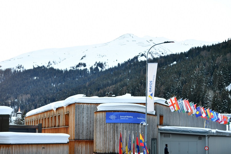 This photo taken on Jan. 14, 2024 shows the exterior view of the Congress Center for the World Economic Forum (WEF) Annual Meeting 2024 in Davos, Switzerland. (Xinhua/Lian Yi)