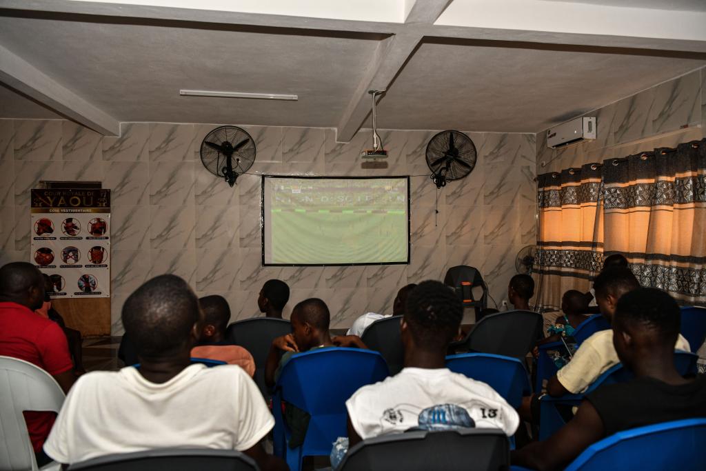 People watch the 2023 Africa Cup of Nations (AFCON) matches with the help of China's satellite TV project in Yaou village, Cote d'Ivoire, Jan. 14, 2024. (Xinhua/Han Xu)