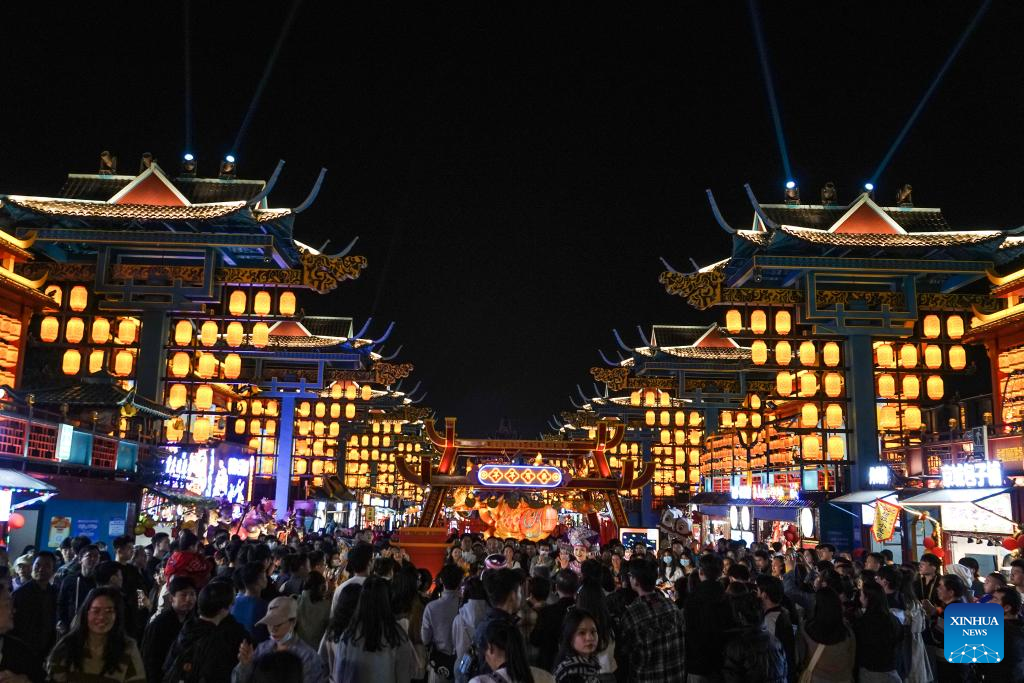 Tourists visit a cultural tourism block in Nanning City, south China's Guangxi Zhuang Autonomous Region, Jan. 15, 2024. Various events are held across the country in celebration of the upcoming Chinese Lunar New Year, which falls on Feb. 10 this year. (Photo by Yu Xiangquan/Xinhua)
