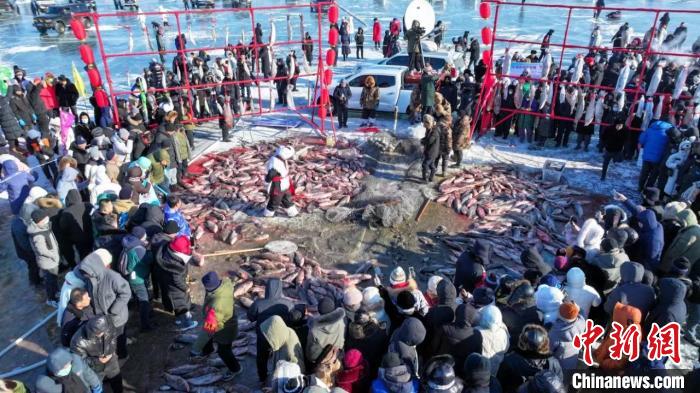 At the festival’s opening ceremony, nearly 1,000 performers danced to recreate the fishing and hunting scenes on the shores of Xingkai Lake thousands of years ago. They showcased various rituals such as drumming and igniting the holy fire, and performed a lake worship ceremony, and fishing chants. One of the exciting scenes was dozens of fishermen pulling a huge net more than 1,500 meters long out of ice.