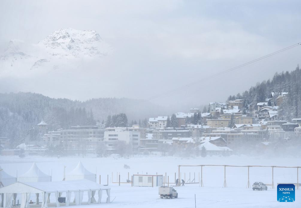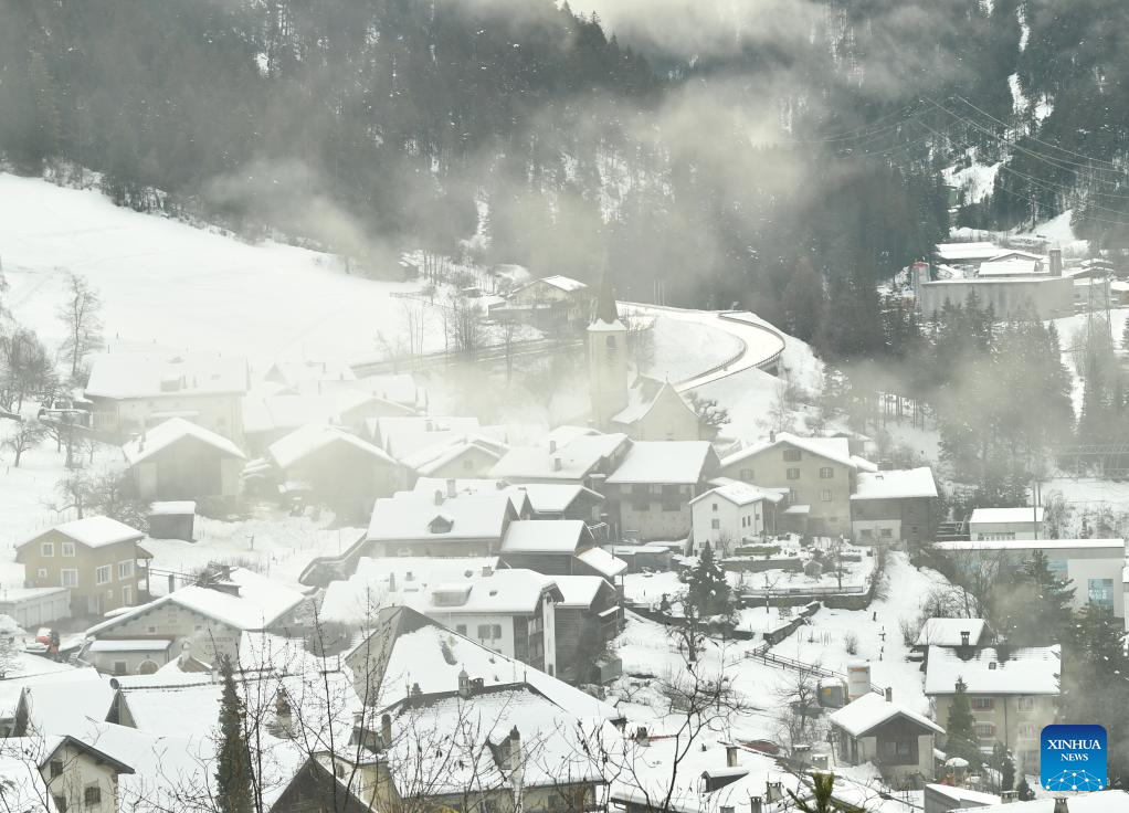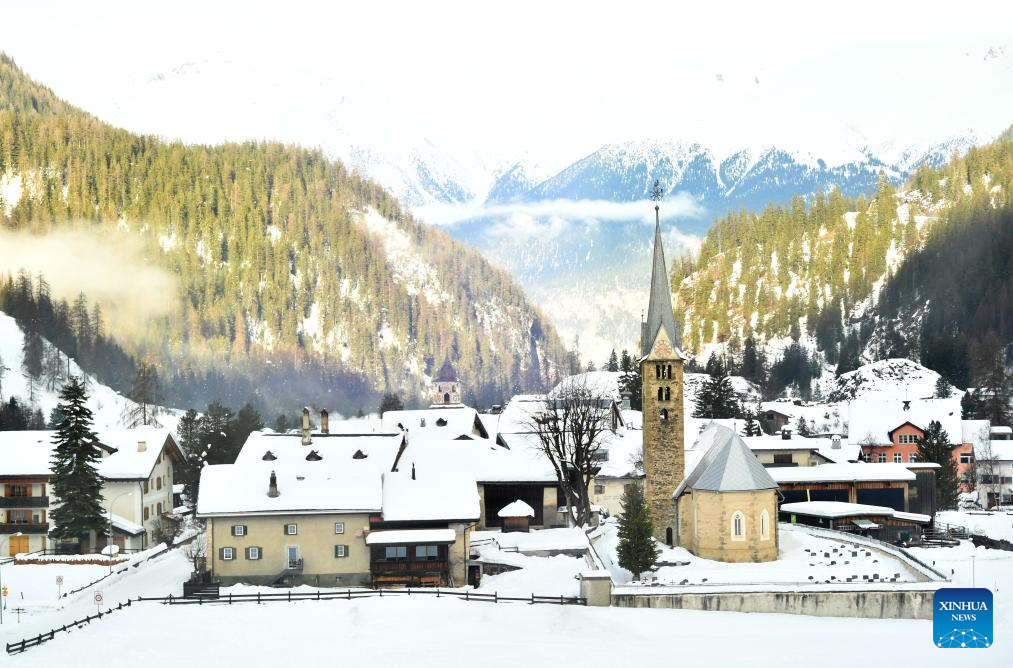 This photo taken on the train from St. Moritz to Davos shows the snow scenery in Switzerland, Jan. 18, 2024. (Xinhua/Lian Yi)