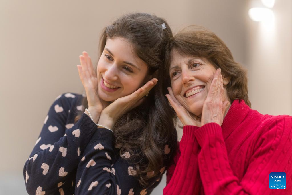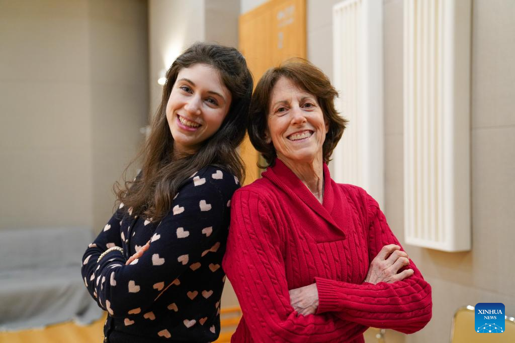 Carly Beth (L) poses for a photo with her mother in Beijing, capital of China, Jan. 16, 2024. (Xinhua/Zhou Dixiao)