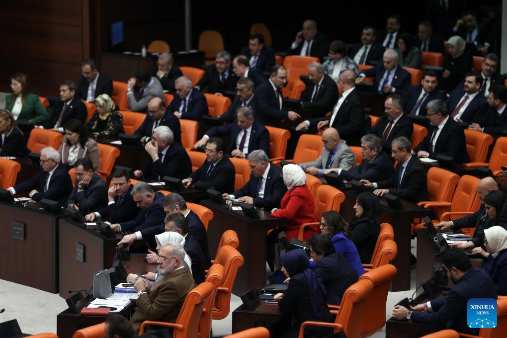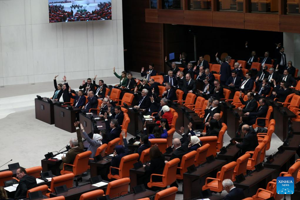 Turkish lawmakers attend a vote on Sweden's NATO bid at the Grand National Assembly in Ankara, Trkiye, on Jan. 23, 2024. Turkish lawmakers on Tuesday approved a long-delayed bill on Sweden's bid to become the 32nd member of NATO. (Photo by Mustafa Kaya/Xinhua)