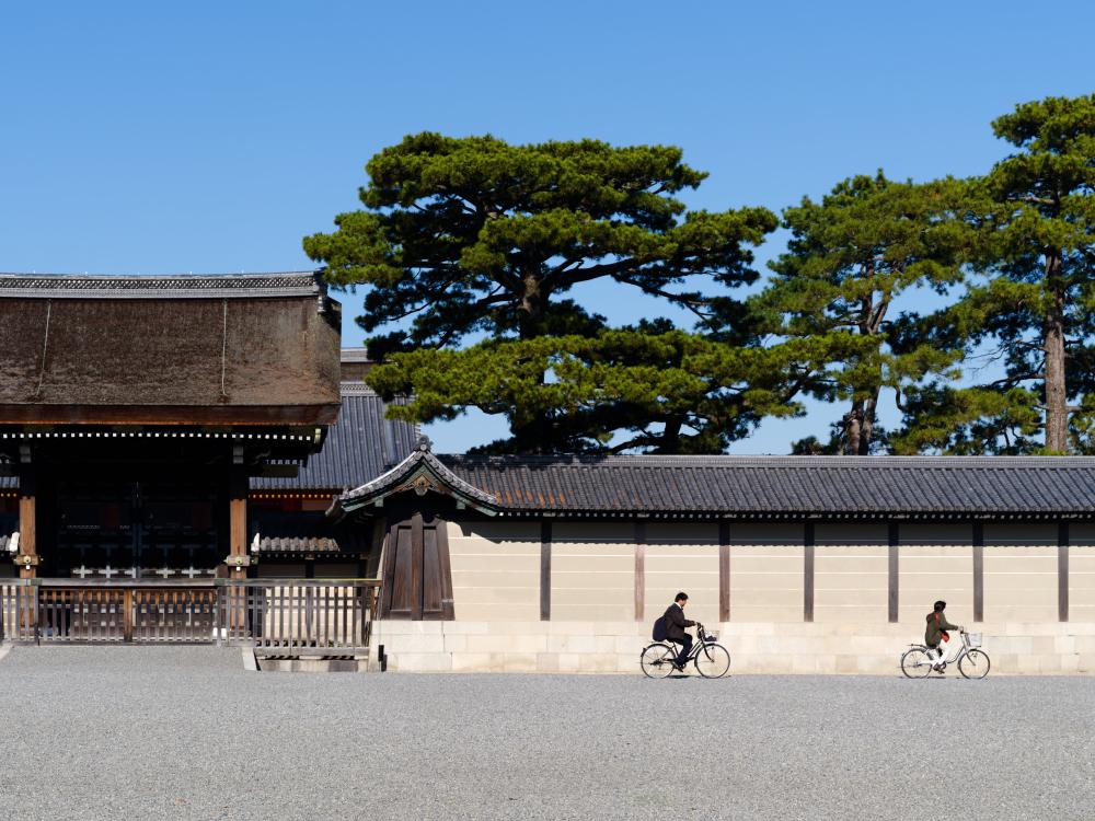 People ride past the Kyoto Gyoen in Kyoto, Japan, Nov. 22, 2023. (Xinhua/Zhang Xiaoyu)