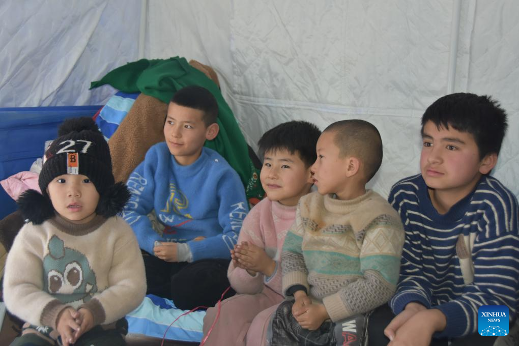 Children play a game at a resettlement site in Wushi County, northwest China's Xinjiang Uygur Autonomous Region, Jan. 24, 2024. (Xinhua/Gou Lifeng)