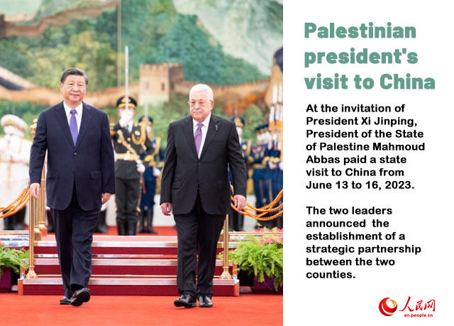 At the invitation of President Xi Jinping, President of the State of Palestine Mahmoud Abbas paid a state visit to China from June 13 to 16, 2023.