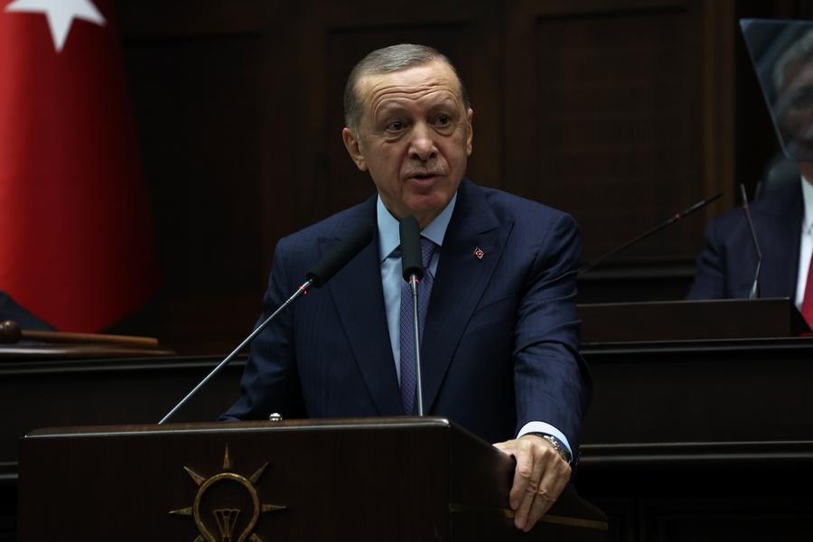 In this file photo, Turkish President Recep Tayyip Erdogan speaks at the Justice and Development (AK) Party's parliamentary group meeting in Ankara, Türkiye, on Oct. 25, 2023. (Photo by Mustafa Kaya/Xinhua)